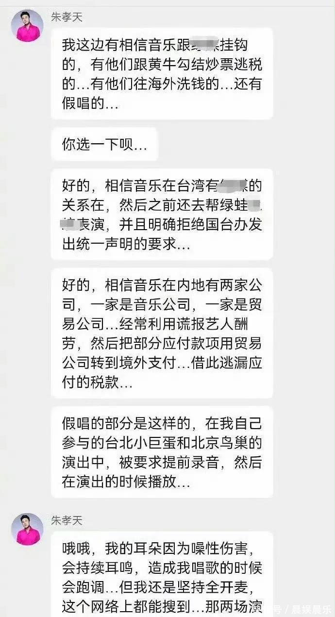 更严重的是“关联公司转移资产”的指控。朱孝天透露,相信音乐通过“音乐公司+贸易公司”的“财务游戏”,将艺人酬劳拆分,部分款项经贸易公司转至境外支付,涉嫌逃漏个人所得税。这一操作已触碰法律红线,若属实,不仅公司将面临巨额罚款,相关艺人也可能被牵连。朱孝天特意强调“已赴相关部门配合调查,行动很快会来”,这番表述让爆料的可信度增添了几分重量。