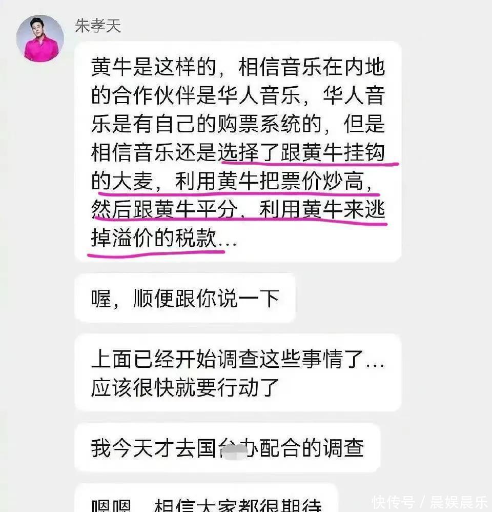 据流传的粉丝群聊天截图显示,朱孝天直言自己是“被退出”巡演,而非主办方对外宣称的“多次直播泄密”。他自曝并未与相信音乐正式签约,因拒绝对方三项未公开的不合理要求(疑涉及酬劳分配、宣传期时长及演出城市安排),被公司单方面切断联系,甚至遭到“不可控”的抹黑。“要退出可以直说,何必泼脏水”,字里行间满是积压的不满。更令人唏嘘的是,朱孝天的妻子韩雯雯曾在直播中透露,为了配合F4合体,朱孝天暴瘦30斤,还因停药导致旧疾复发,这份为事业的付出最终却换来“被踢出局”的结果,也为后续的爆料埋下了伏笔。如果说缺席巡演是矛盾的爆发点,那么朱孝天抛出的三大指控,则直接将事件推向了舆论高潮,每一条都直击行业敏感痛点。首当其冲的是“勾结黄牛逃税”的指控,朱孝天爆料相信音乐明明拥有独立售票系统,却特意选择与大麦网合作,通过黄牛炒高票价后进行利润平分,以此逃避溢价部分的税款。这一说法戳中了无数歌迷的痛点——顶流演唱会“一票难求”早已是常态,普通粉丝熬夜守在购票平台却一无所获,黄牛手中的票价却能翻数倍甚至数十倍,而朱孝天的爆料,暗示这种乱象背后可能存在主办方的主动参与,让“抵制黄牛”的口号沦为空谈。