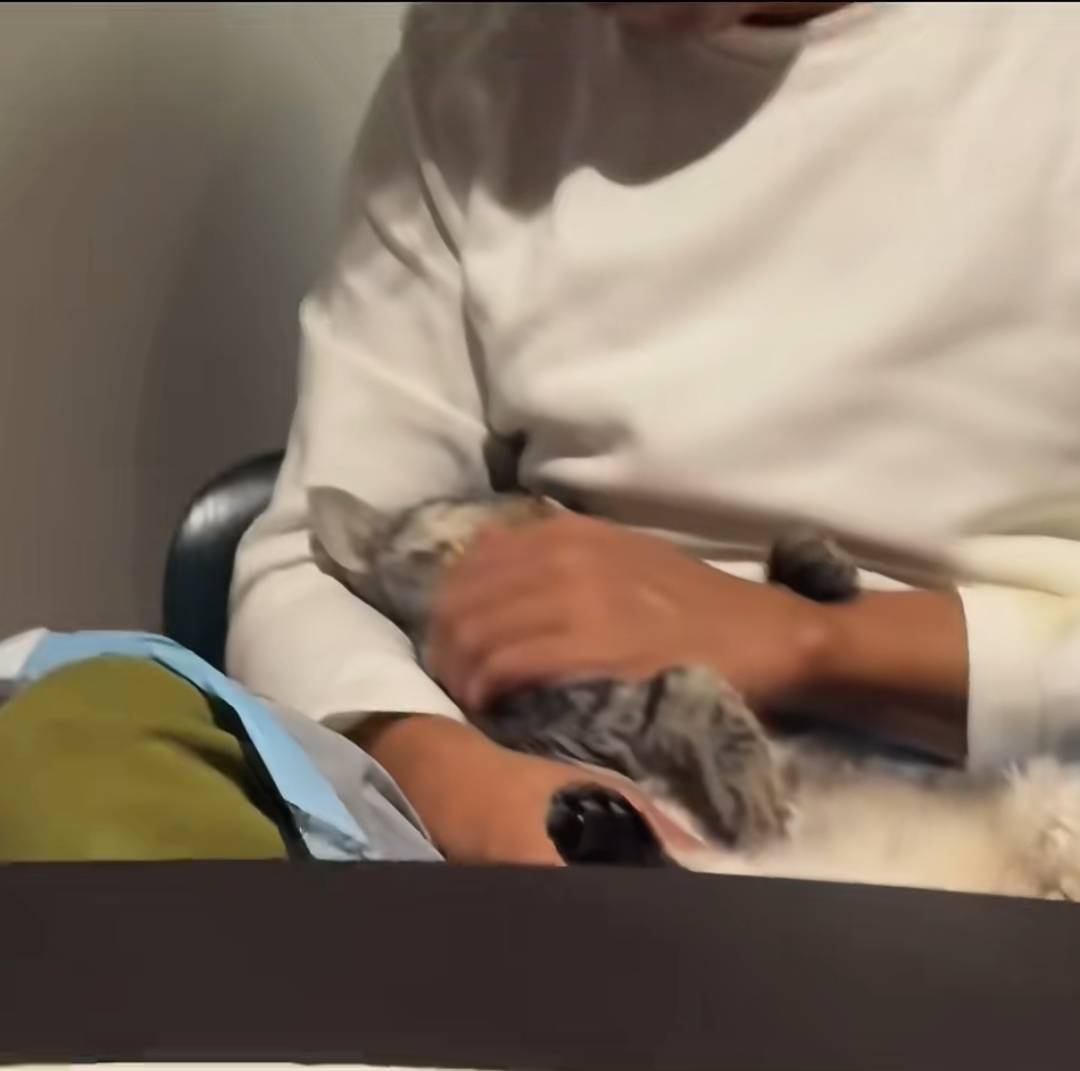 期间怕猫的王冠一直不敢太靠近猫咪,直到有一天她老公说“小喵好像要走了”,猫咪就这样趴在王冠老公怀里走了,怕猫的王冠也坐在了他旁边,陪着猫咪和他,王冠说那一刻的她突然就不怕了,不过看着一条生命从无到有,真的让人很感伤。