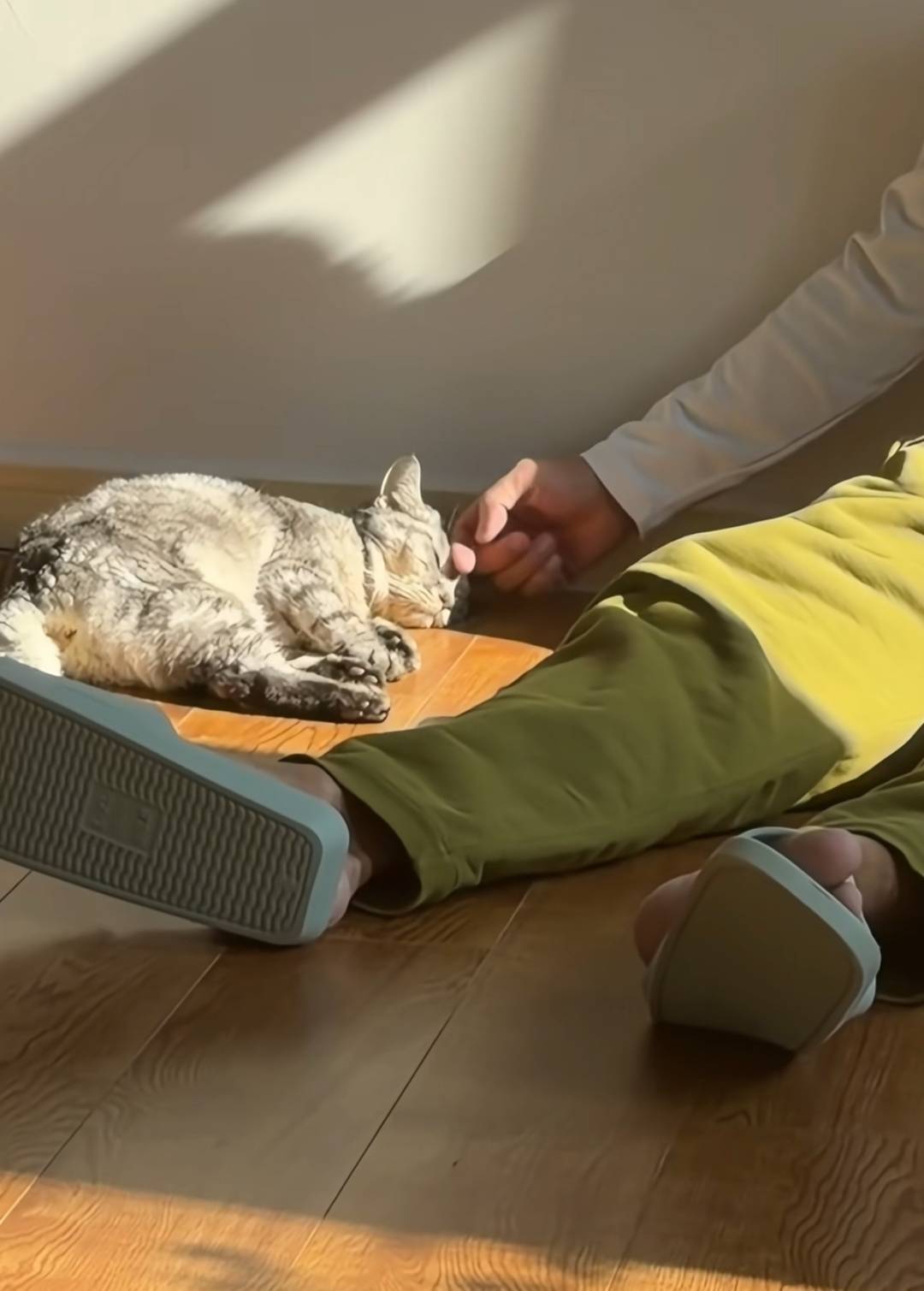 心善的王冠当然也是答应了,对于王冠老公来说,那岁的猫已经不是宠物,而是家人一样的存在了,接回家后,王冠老公经常带着猫咪晒太阳,陪它玩,看王冠晒出的照片就知道,男方真的是个很善良柔软的人。